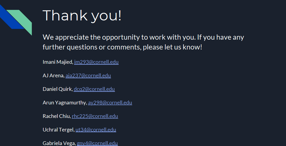 In general, working for a client, especially a client with a social mission truly motivated me to want to produce useful recommendations. Seeing how invested they were in the organizatino and its vision is inspiring and admirable. I genuinely wanted them to succeed as an organization and hope they take some of the recommendations we provided to them.